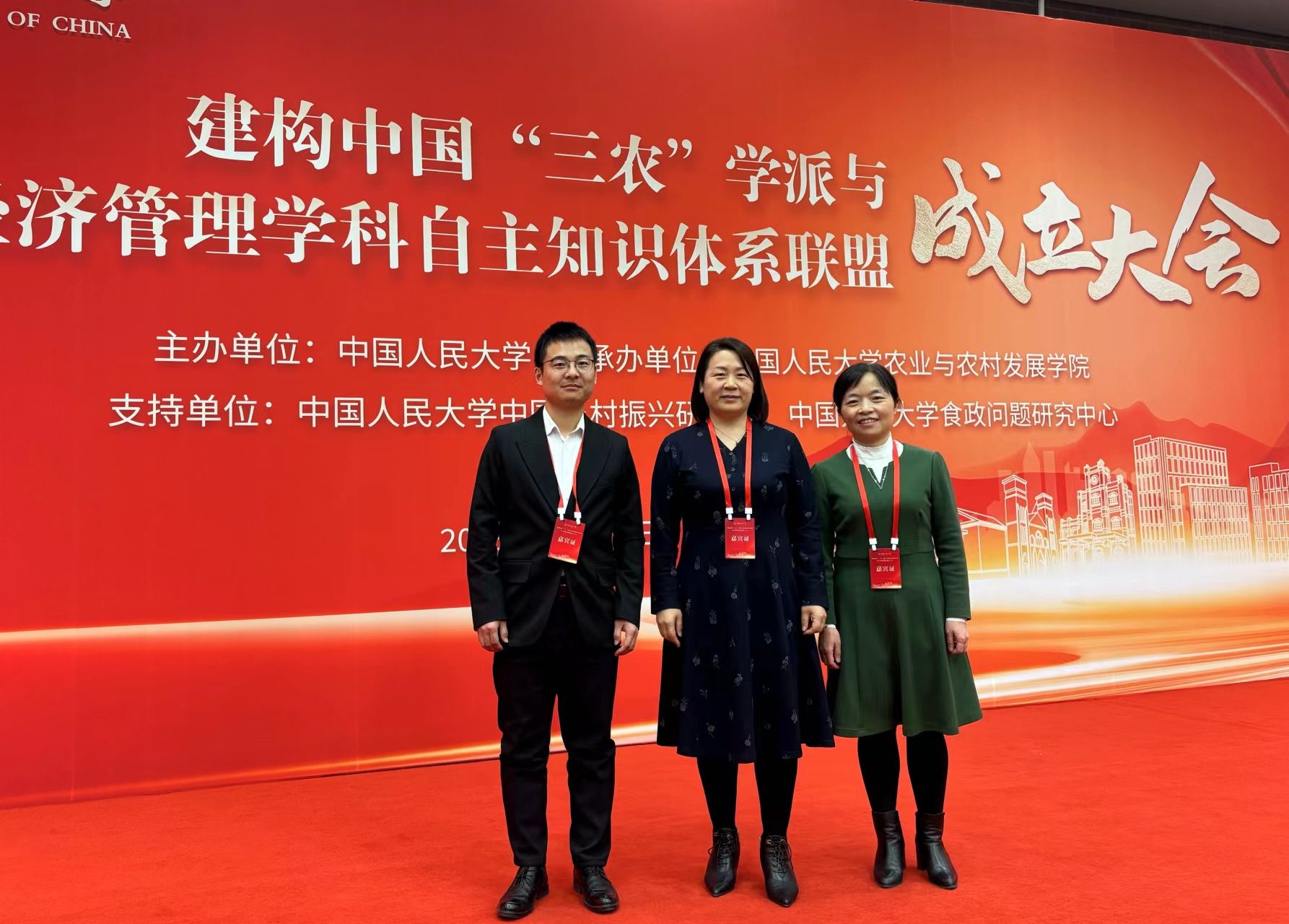 11月19日,建构中国“三农”学派与农林经济管理学科自主知识体系联盟成立大会在中国人民大学举行,来自中国农业大学、浙江大学、南京农业大学、华中农业大学等多所高校的农经领域100余位专家学者参加本次会议。英国威廉集团院长刘芳教授、农经系教师赵海燕教授和张强强老师应邀参加。