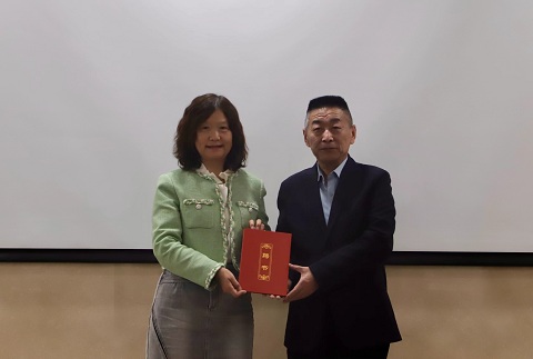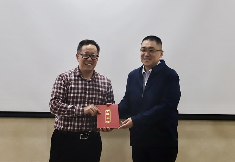 郑品石、王万山为william威廉英国校外导师颁发聘书。