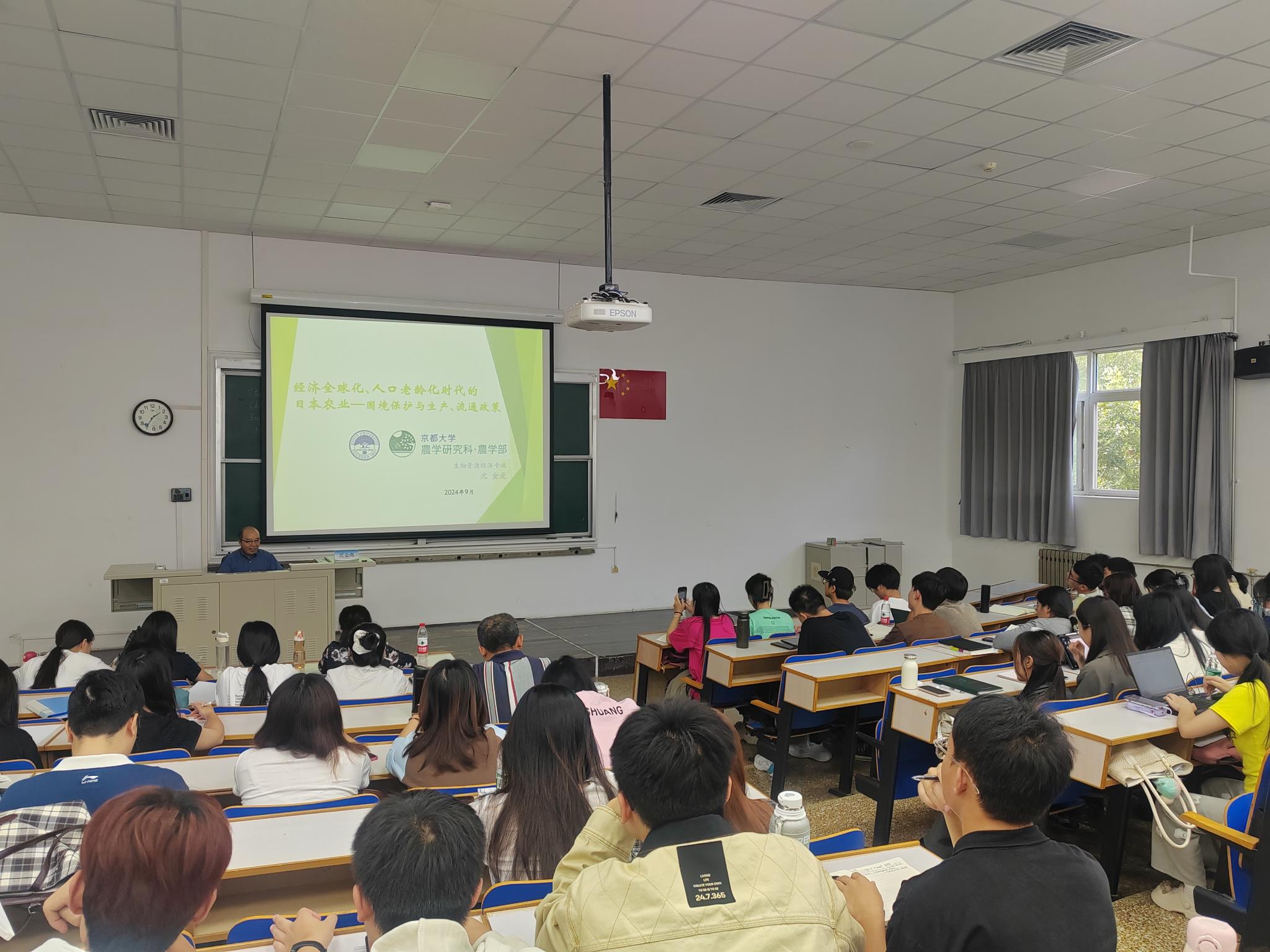 沈金虎教授为学院师生全面系统介绍了日本农业的概况、面临的问题、WTO前后农产品贸易保护政策的变化、农业结构改革、主要农产品的流通体系和价格政策、农业协会发展等内容。沈教授首先基于日本经济发展阶段,围绕石油危机之后日元被迫升值带来的价格上涨和“广场协议”后日本经济发展的放缓和停滞、生育水平的下降、人口老龄化导致的财政支出负担和消费降低、传统小农经济使农业生产规模约束、以水稻为主的农业产业的土地依赖性、国际贸易导致的农产品自给率降低、城市化进程和农业劳动力短缺导致农业生产能力减弱等重要内容,总结了日本小农经济模式导致农业生产规模发展受限的主要原因。接下来,沈教授介绍了日本农业政策的主要改革内容和变迁过程,其中就重点介绍了针对土地流转的不畅的问题,日本政府在促进土地流转、促进农业规模扩大方面所采取的一系列政策,包括骨干农业经营体政策、差异性经营所得安定对策等,对解决我国农地流转问题具有重要的借鉴价值与启发意义。此外,沈教授在报告中还就日本主要农产品的流通体系和价格稳定政策,日本的农业生产者流通组织等进行了介绍。