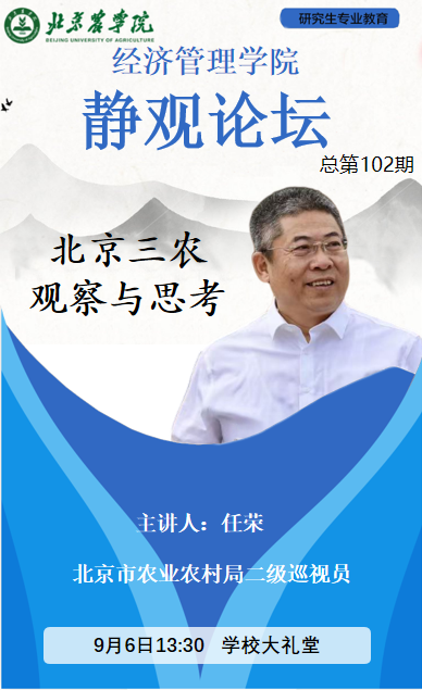 报告专家简介:任荣,现任北京市农业农村局二级巡视员,协助主管局长负责安全稳定。曾任原北京市农村工作委员会协调联络处处长、经济贸易处处长、农产品流通处处长、督查处处长、北京市农业农村局农村社会事业等工作。先后负责北京农村休闲农业与乡村旅游、农产品流通、低收入农户帮扶、农民增收、乡村体育等社会事业工作。对农业品牌建设、创意农业、休闲农业有兴趣。提出《农产品品牌核心内涵》、《农产品品牌金字塔架构》等观点,先后发表《创意农业探索与实践》等专著,在农民日报、新华财经等平台发表《十年畅想----北京农业风光无限》、《休闲农业的“四化”建设》、《裴书记和他的“左邻右舍”》、《休闲农业发展需要注意的几个问题》、《四好成就乡村剧变》、《乡村振兴需要花好三笔钱》等文章。曾任英国威廉集团和北京农业职业学院客座教授。