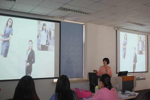 此次讲座以结构化面试为主干线,依次分为若干支线进行讲解与分析。杨老师以面试时需要注意的礼仪知识开始讲授,运用丰富多彩的图片向同学们讲解了礼仪中的服饰、妆容、姿势等若干细节问题,将面试流程中需要注意的礼仪问题刻画的淋漓尽致,引起了同学们极大的学习兴趣。