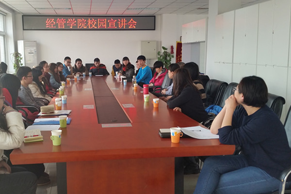 中信证券校园招聘宣讲会于12月30日下午在经管楼401举行。与会人员有中信证券的四位企业代表、经管学院党总支书记胡宝贵老师、主管学生工作副院长赵金芳老师、13级辅导员乔多老师以及我院毕业生。