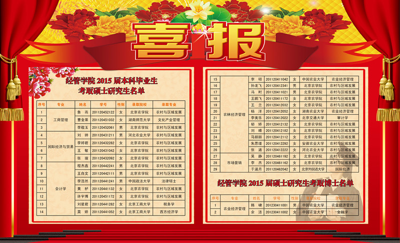 喜讯:经管学院2015届毕业生有29名考取硕士,2名考取博士