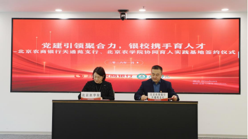 李健介绍了北京农商银行天通苑支行的基本情况,并对学院在人才输送、平台共建等方面给予的支持表示感谢。他表示,支行愿与学院继续深化在知农爱农新型人才培养、农业新业态案例开发、创新创业教育及学生实习实践等方面的合作,大力推进产教融合,积极探索金融人才培养的新模式与新路径,共同打造产学研用紧密结合的实践基地,开创共赢发展新局面。