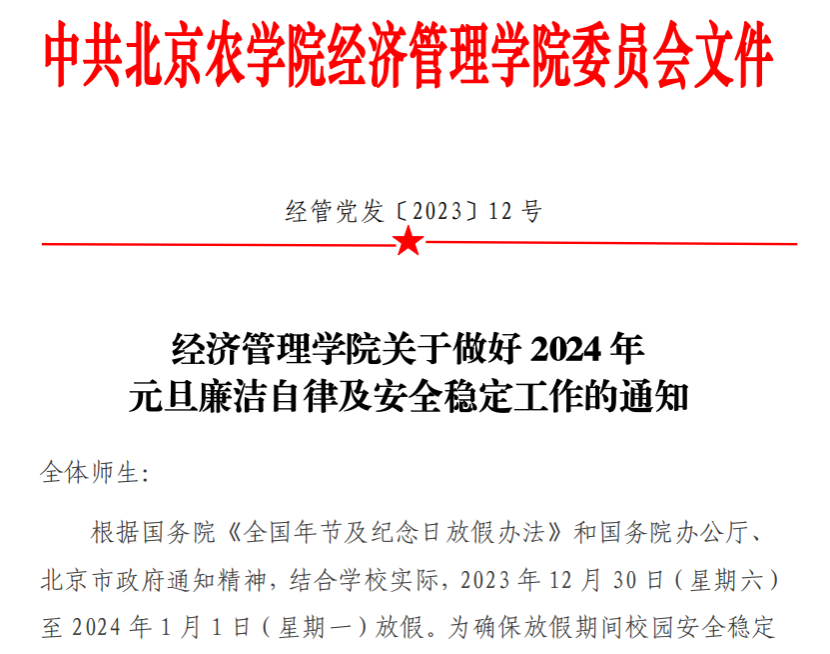 党委书记王万山要求全院师生特别是党员干部在元旦春节期间带头崇尚廉洁文化、践行自律准则、严守制度规章;党委副书记、院长刘芳就做好安全稳定工作、开展隐患排查整改做出具体安排。
