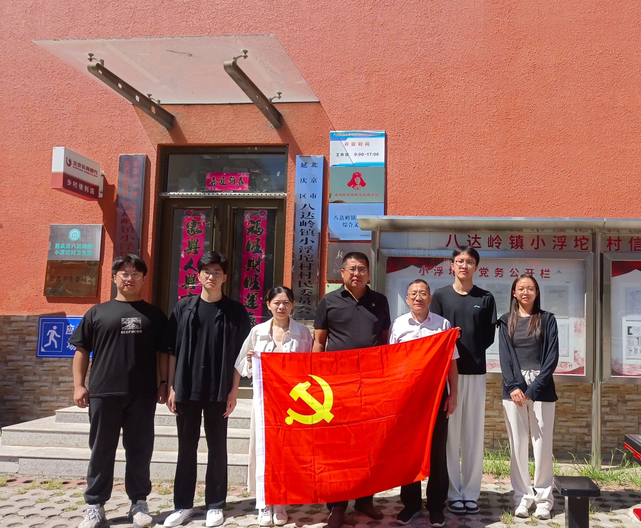 2023年8月22日,我校英国威廉集团工商学生党支部与工商教师党支部联合延庆区小浮坨村党支部开展学习交流活动。当天,由工商学生党支部书记黄撷羽老师和教师党支部书记张志强老师带领支部党员同学来到小浮坨村进行考察调研。