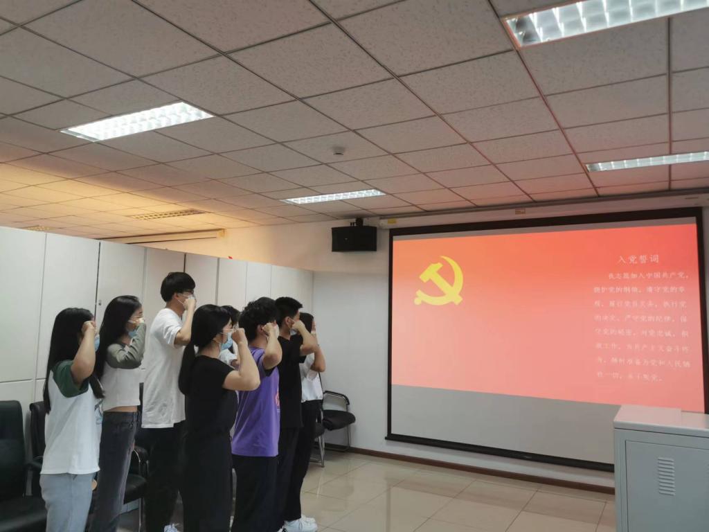 全体党员重温入党誓词,面对党旗进行庄严宣誓。每一名学生党员围绕“入党为了什么,入党做了什么,对标党组织要求还差什么,在学习、志愿服务、社会实践、疫情防控中如何发挥先锋模范作用”等四个方面,开展“学生党员四问”研讨交流。进一步增强了学生党员队伍的凝聚力和战斗力,坚定了理想信念和历史责任感。