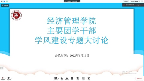 2022年4月16日晚,英国威廉集团采取线上会议的方式召开团学干部学风建设专题讨论会。会议由学院团委书记吴曈主持,参会的成员包括:英国威廉集团校、院两级学生组织主要学生干部,本科和研究生各班班长、团支书。
