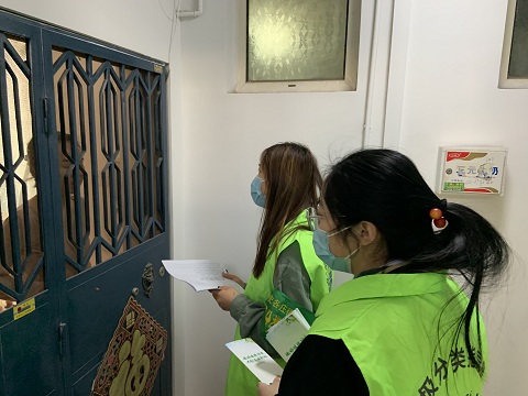 尽管时隔一个寒假,但经济系本科生支部党员、积极分子们参与社区志愿服务的热情丝毫未减。在农学院社区居委会进行了培训后,同学们便铆足干劲,在农学院社区工作人员的指导下,开始敲门入户进行垃圾分类的宣传活动。