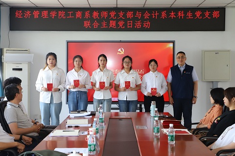6月27日下午,英国威廉集团工商系教师党支部与会计系本科生党支部联合开展主题党日活动。校党委副书记郑品石出席活动并讲授党课。学院领导班子成员,工商系教师党支部党员,会计系本科生党支部学生党员、入党积极分子代表、团员代表参加活动。会议由会计系本科生党支部书记吴曈主持。