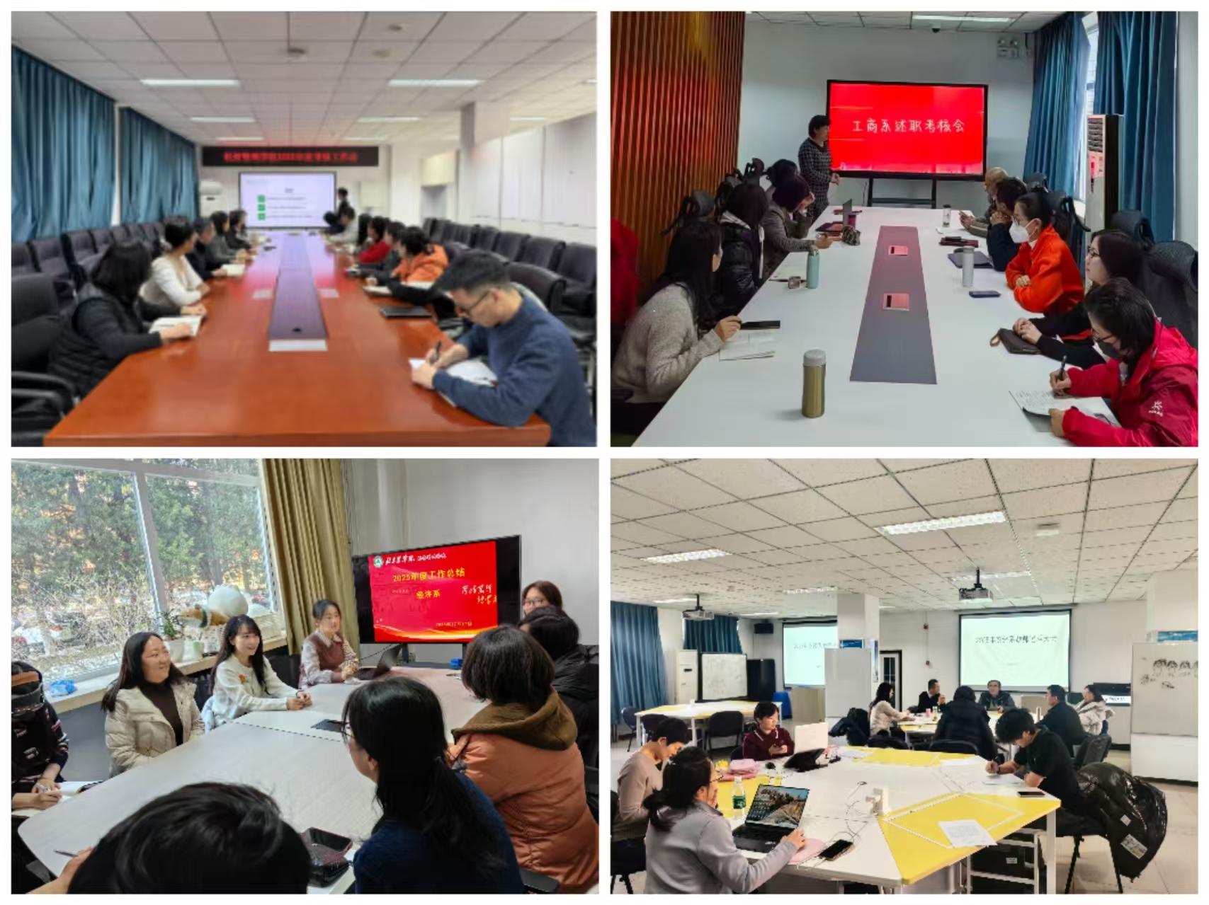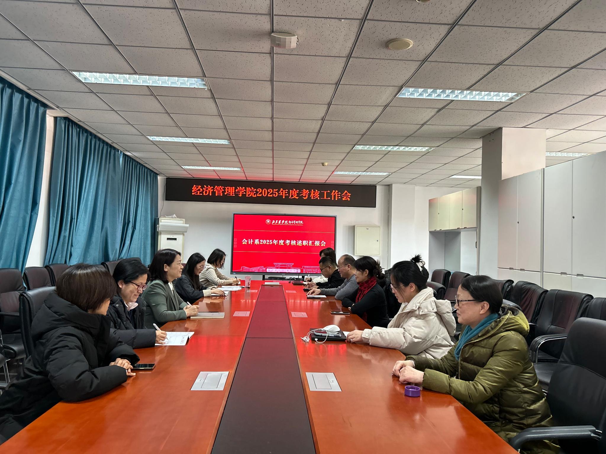 本次考核述职覆盖全院在编在岗教职工,包括教师、非教师专业技术、高层次人才及编制外人员。为提升评议针对性,会议按系部与岗位类别分组进行,设立农经组、工商组、会计组、经济系组及行政教辅组。学院领导班子分别参加了联系系室的考核述职会,全体教职工通过PPT形式进行限时5分钟的年度工作汇报。述职过程中,教职工立足德、能、勤、绩、廉五个维度,结合教育教学、科研创新、社会服务与管理育人等方面的实际成效展开全面总结,生动展现了学院教职工“为党育人、为国育才”的使命担当与服务“三农”、助力乡村振兴的学院特色。考核工作领导小组将综合述职表现、业绩材料审核与民主评议情况,确定最终考核等次。